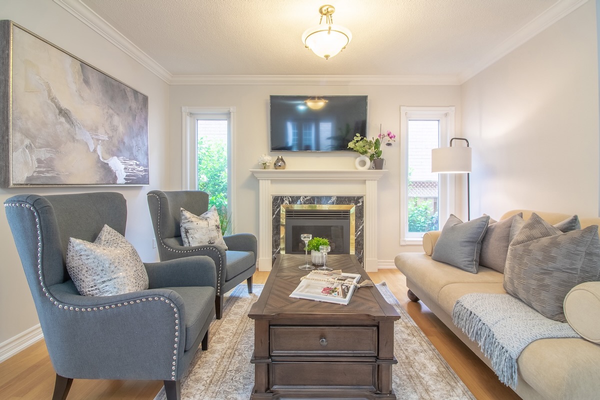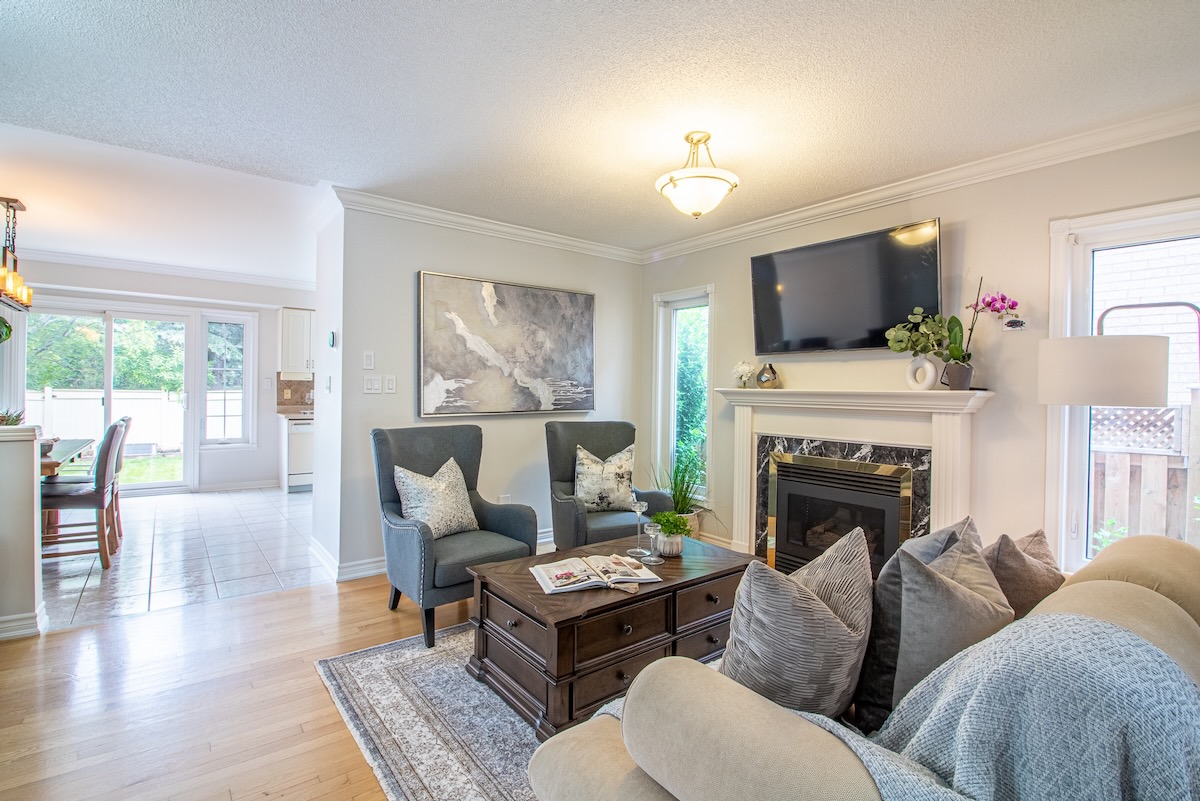Freshly painted interior with tile and hardwood flooring throughout, the main floor offers a bright and inviting living room with abundance of windows and a cozy fireplace, meticulously maintained kitchen combined with dining room that overlook a beautifully landscaped backyard that provides a private oasis for entertaining or gardening.